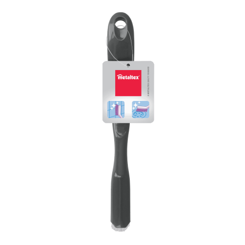- Mit gummiertem Schaber am Griffende für hartnäckigen Schmutz