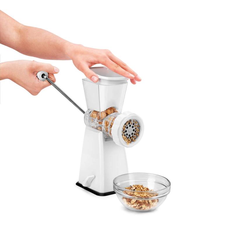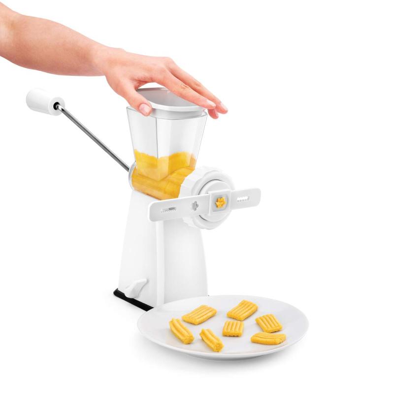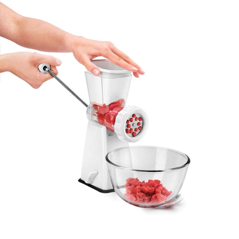 - Inkl. 2 Einsätzen zum Zerkleinern von Fleisch, Nüssen und Gemüse und einem Gebäckeinsatz für Spritzgebäck, Kekse und Nudeln