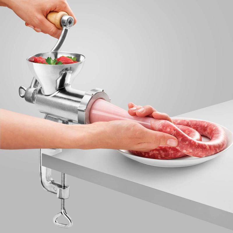 - Inkl. Spritzgebäckaufsatz, Wurstfülltrichter und Stößel