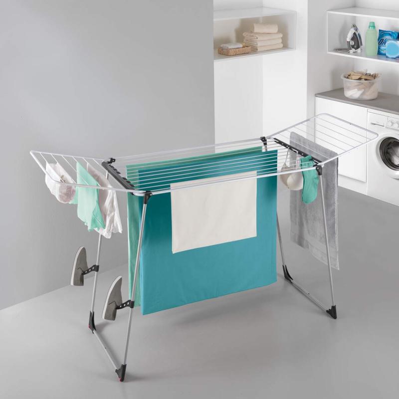 - Extra-großer und hoher Flügelwäschetrockner mit Rollen