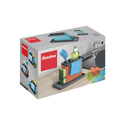 - Se fija con 2 ganchos autoadhesivos y puede colocarse tanto dentro como fuera del fregadero
