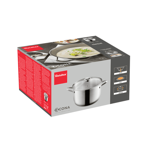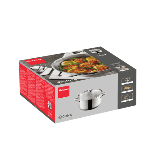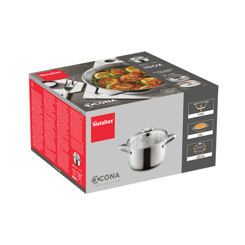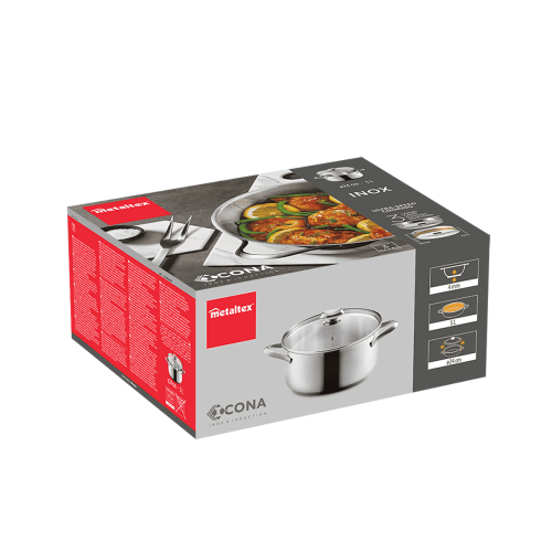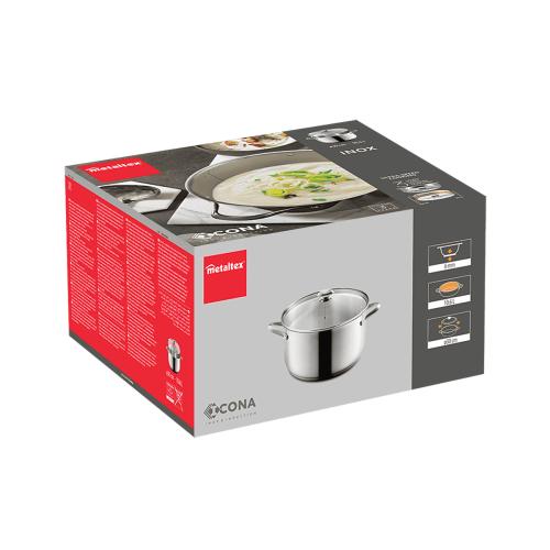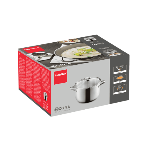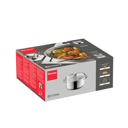 - Su base universal es válida para todo tipo de cocinas: inducción, vitrocerámica, halógena, eléctrica y gas. También es apta para su uso en horno hasta 250ºC