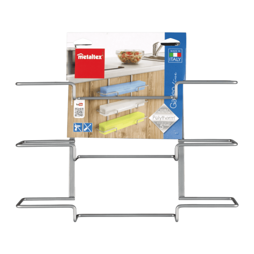 - Útil para mantener en orden rollos de aluminio, film transparente o papel pergamino