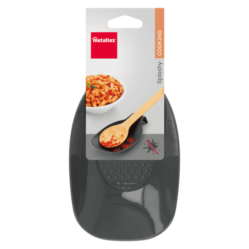 - Práctico soporte para dejar en reposo el utensilio con el que se esté cocinando, permitiendo así mantener la superficie de trabajo siempre limpia