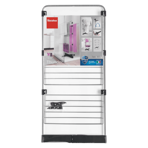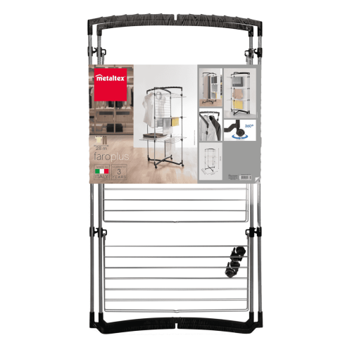 - Réduit considérablement le temps de séchage du linge délicat et des textiles inadaptés au sèche-linge.