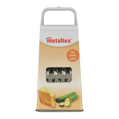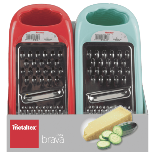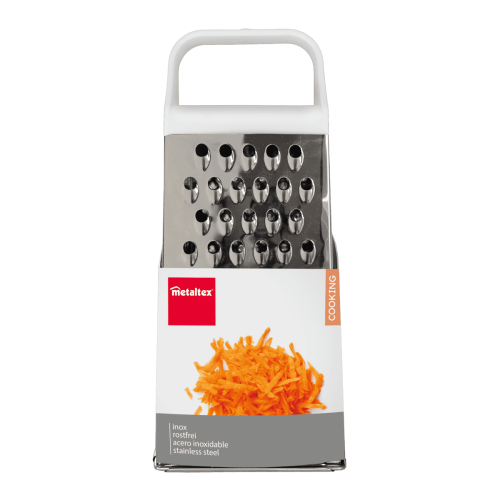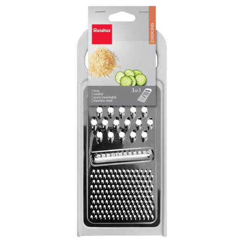 - Con 3 dischi acciaio inox: taglio a rondelle, grattugia e grattugia fine