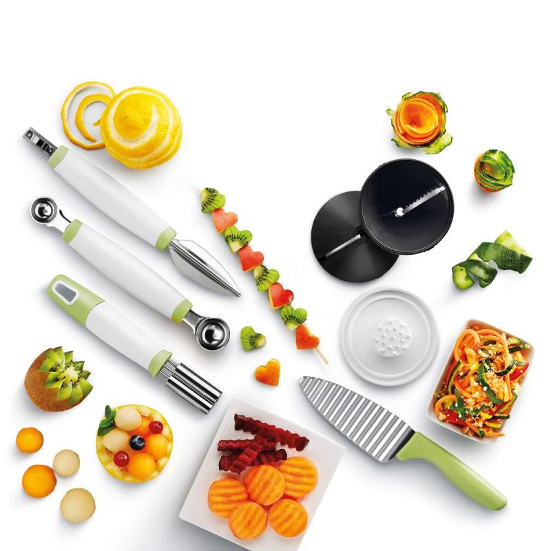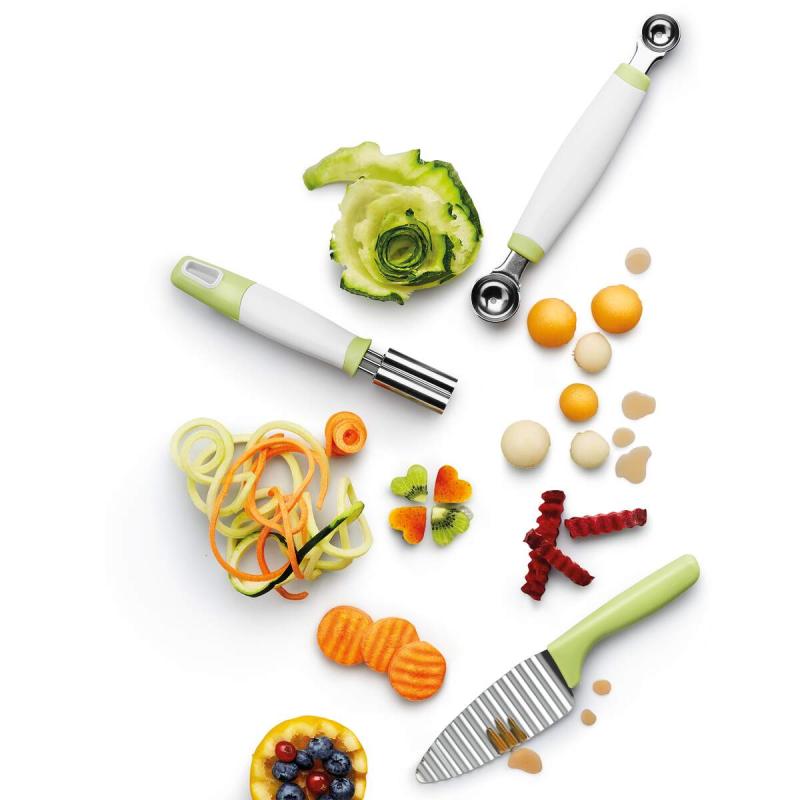 - 1 boleador de melón doble, 1 cortador y decorador de vegetales doble